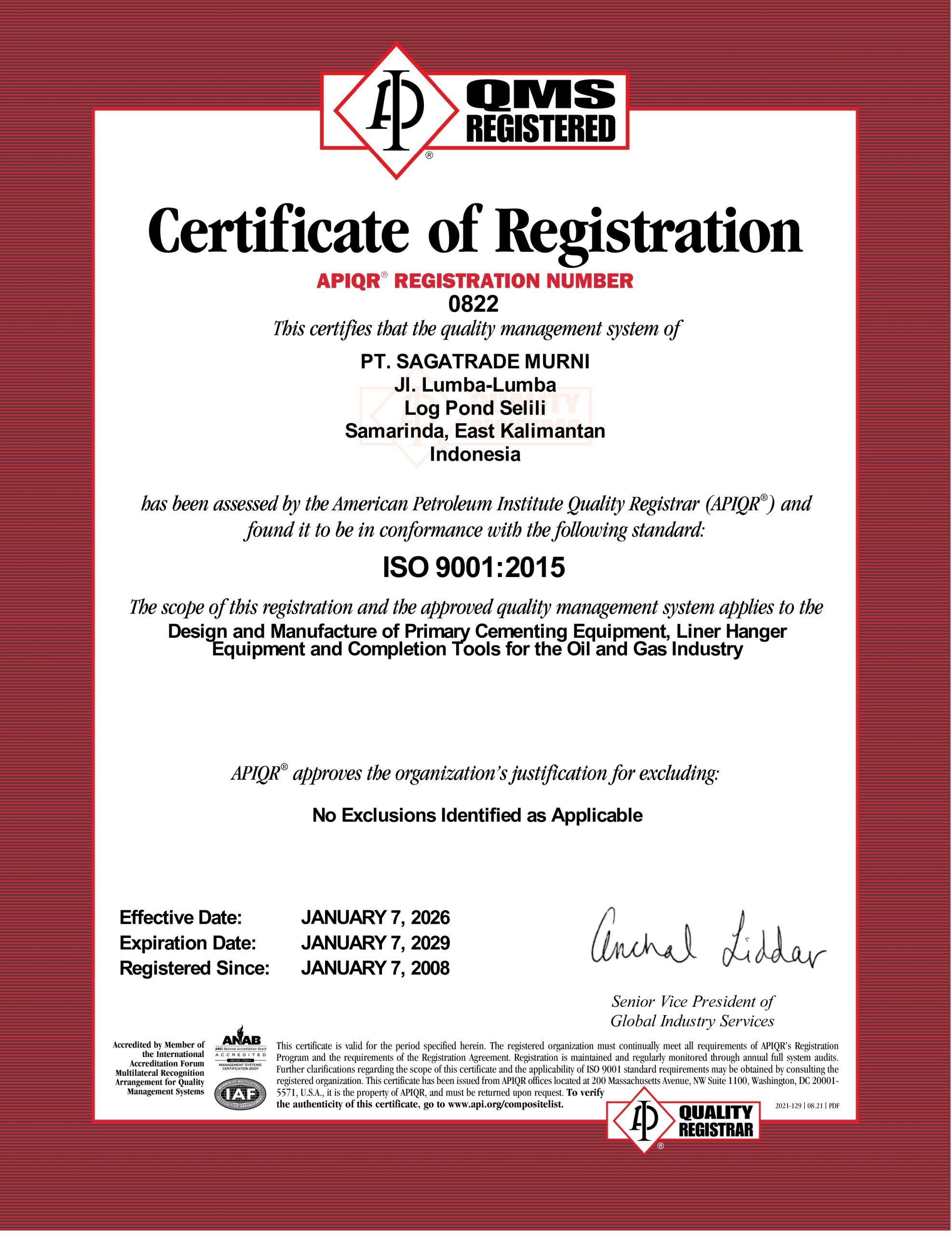 Certificate API-11D1